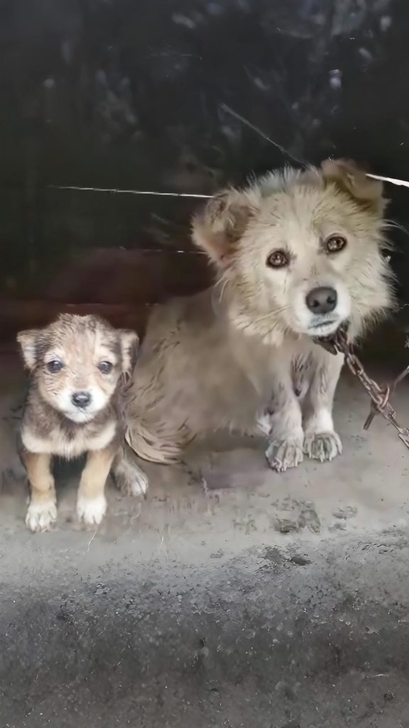Two tiny puppies stayed close to her. One barely moved—his small body weak, hot with fever, fighting something far bigger than himself. The other clung nearby, trembling but alert. Their mother stood protectively over them, exhausted yet unyielding.
