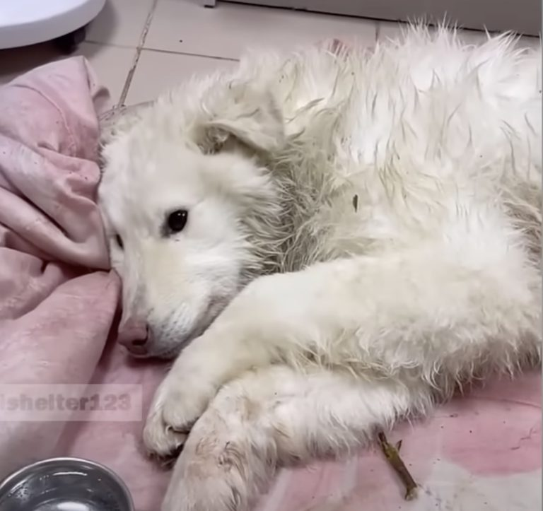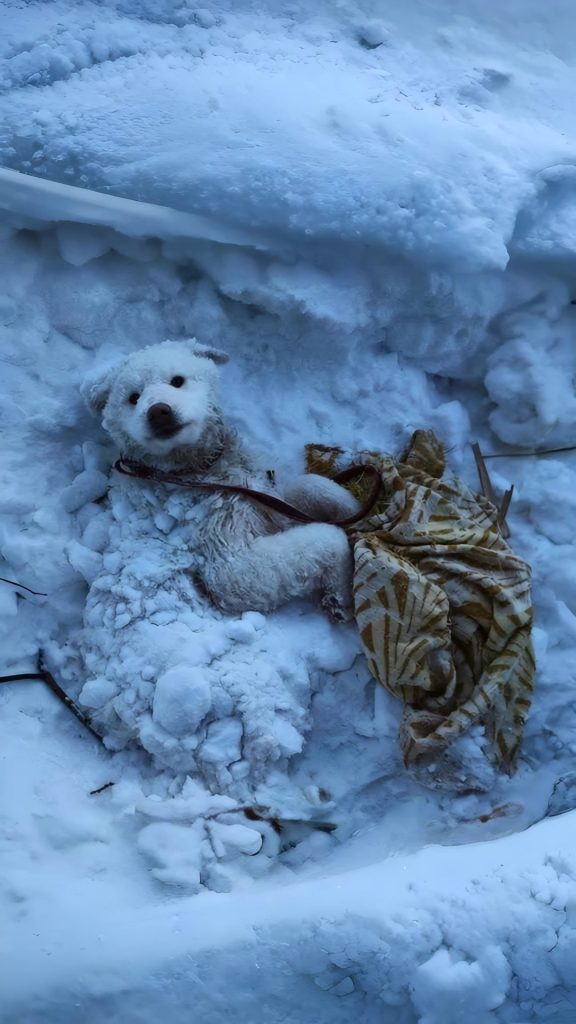 The man dropped to his knees, pushing aside the snow. A white dog lay there, motionless, his body stiff with cold. He was still breathing, but just barely. The dog would later be named Bely. His fur was frozen, his lower body locked in ice, and his strength nearly gone.