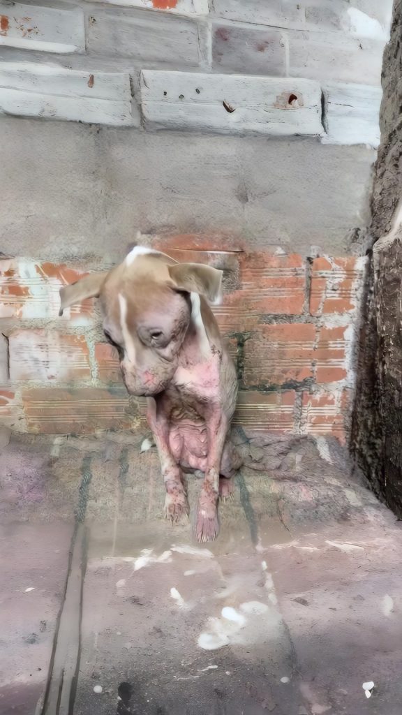 He lay pressed against a cold concrete wall, his body worn thin by weeks of hunger and neglect. His ribs were visible beneath a dull, lifeless coat. Every breath seemed measured, every movement delayed by exhaustion that had settled deep into his bones. The streets had taken their toll — slowly, relentlessly — until all Leo could do was endure.