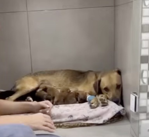 When rescuers arrived, the situation was dire. Khanun and her puppy were critically ill. Severe malnutrition, dehydration, and tick-borne infections had pushed their bodies to the edge. Khanun’s blood levels were dangerously low, while her puppy required immediate medical intervention. The veterinary team moved quickly, administering fluids, medication, and intensive care. It was the beginning of a difficult fight—but finally, they had a chance.