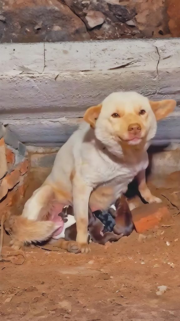 Under a concrete staircase beside a loud, unrelenting road, a mother dog carved out a small, unseen existence. It wasn’t shelter in the way most would understand it. There was no comfort there. No safety. Only shadows, cold ground, and the constant vibration of passing traffic.