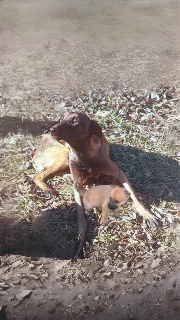 A family who had followed her journey stepped forward. They didn’t see a worn-down stray dog. They saw a devoted mother. A survivor. A soul who had given everything for others.