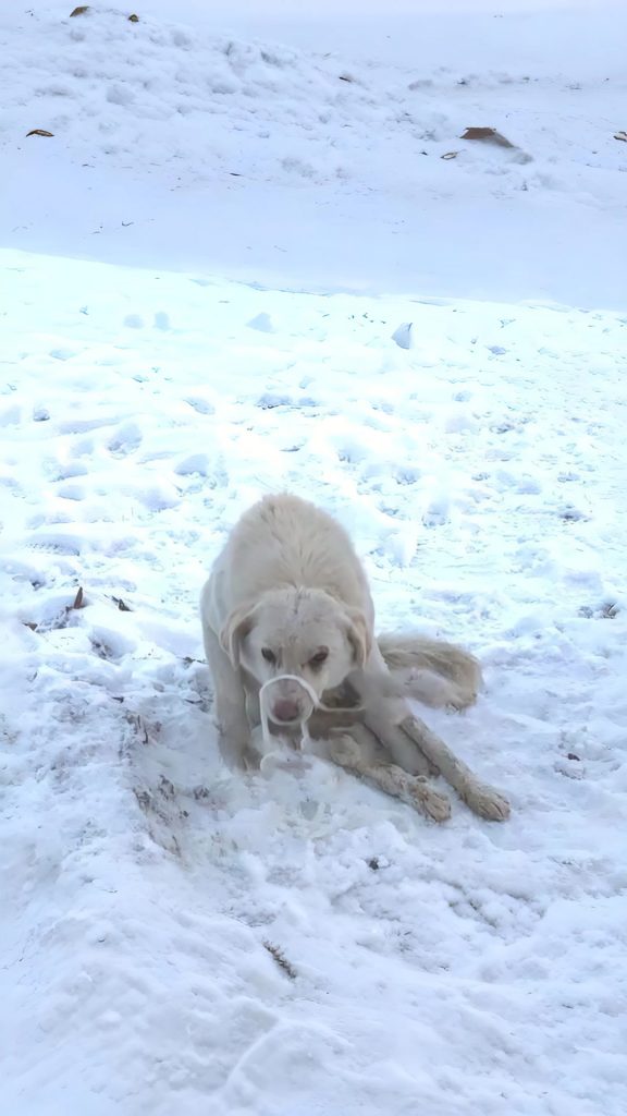 Eventually, he returned outdoors. Guided by a harness and patient hands, Ice stood on solid ground once more. Each step was cautious, but entirely his own. For those who had first seen him frozen in the snow, the moment felt nothing short of remarkable.