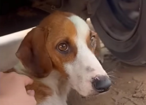 She made no sound. No cries. No desperate attempts to be seen. She didn’t wag her tail or approach strangers. She simply lay there—silent, fragile, almost invisible.