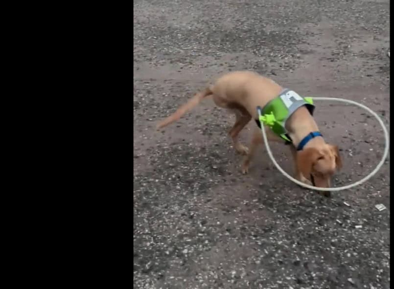 To help him move with more confidence, caregivers introduced protective eyewear designed for visually impaired dogs. The difference was immediate. Obstacles felt less intimidating. Exploration became calmer. Forward movement no longer felt like a gamble.
