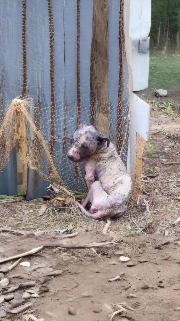 His body was thin, his fur matted and dusty. He didn’t cry out or struggle against his restraint. Instead, he stayed still, resting close to the ground, as though he had already accepted that help might not come. The morning air was cold, and there was no shelter—only silence.